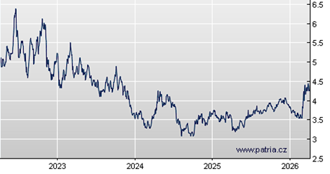Výnos 5letých IRS (úrokové swapy pro hypotéky)