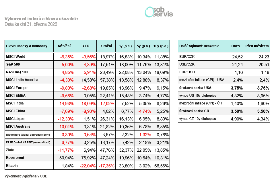 Evropa byla konfliktem silně zasažena a evropské indexy klesly za březen až o 10 %. Konkrétně MSCI Europe si v dolarovém vyjádření odepsal 9,8 %, což je více než index S&P 500. Je to mimo jiné kvůli většímu růstu cen energií a celkově většímu dopadu na evropský průmysl.